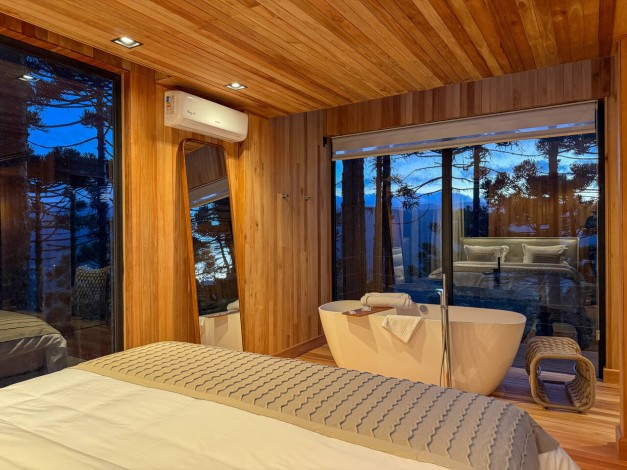 A Cabana Akräs é um convite à imersão profunda na filosofia Mökki. Batizada em homenagem ao espírito protetor dos campos, esta acomodação de 65 m² foi projetada para quem busca o equilíbrio perfeito entre a robustez da montanha e a elegância do design nórdico. Com uma vista panorâmica que emoldura a altitude de Urubici, a Akräs oferece uma experiência sensorial completa, onde o minimalismo da arquitetura se une ao conforto de alto padrão para que seu único compromisso seja o descanso absoluto.