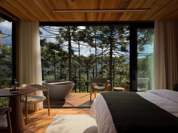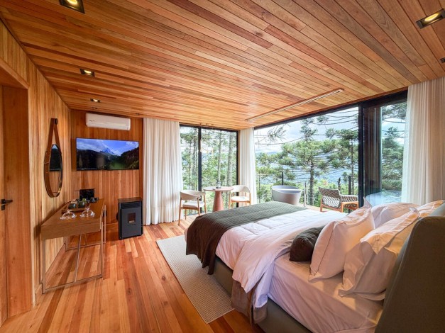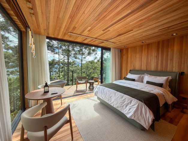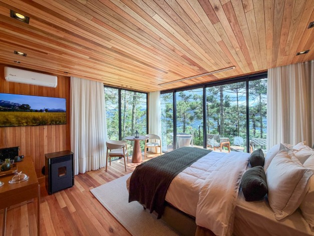 Inspirada no Deus do céu e controlador do clima, a Cabana Ukko é uma ode ao frio intenso e às paisagens deslumbrantes de Urubici. Com 40 m², este refúgio foi desenhado para quem deseja sentir a força da natureza de perto, sem abrir mão do luxo e do design. Aqui, a experiência de altitude atinge seu ápice na conexão entre o interior acolhedor e a imensidão externa, celebrando a beleza bruta do inverno catarinense.