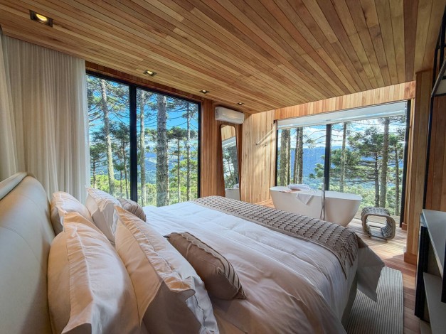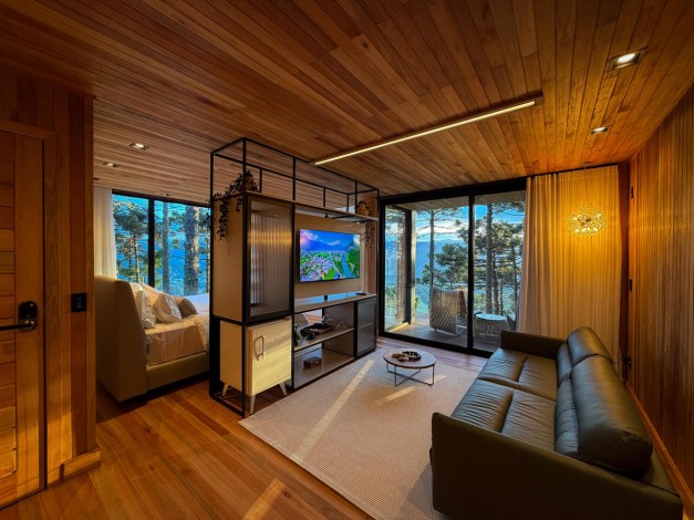 A Cabana Akräs é um convite à imersão profunda na filosofia Mökki. Batizada em homenagem ao espírito protetor dos campos, esta acomodação de 65 m² foi projetada para quem busca o equilíbrio perfeito entre a robustez da montanha e a elegância do design nórdico. Com uma vista panorâmica que emoldura a altitude de Urubici, a Akräs oferece uma experiência sensorial completa, onde o minimalismo da arquitetura se une ao conforto de alto padrão para que seu único compromisso seja o descanso absoluto.