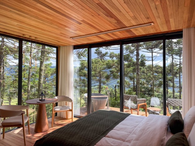 Inspirada no Deus do céu e controlador do clima, a Cabana Ukko é uma ode ao frio intenso e às paisagens deslumbrantes de Urubici. Com 40 m², este refúgio foi desenhado para quem deseja sentir a força da natureza de perto, sem abrir mão do luxo e do design. Aqui, a experiência de altitude atinge seu ápice na conexão entre o interior acolhedor e a imensidão externa, celebrando a beleza bruta do inverno catarinense.
